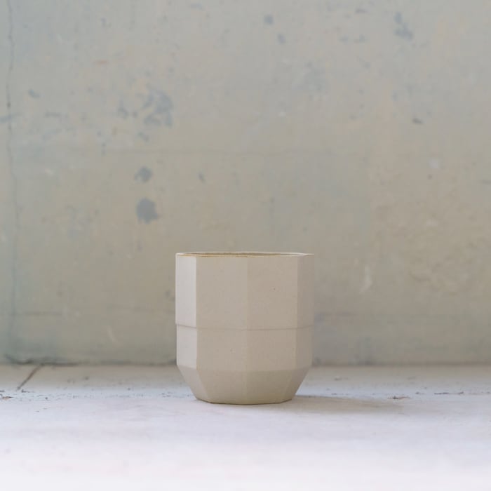 陶磁器製 変型八角柱 約12cm×口径11cm×底面最長7.5cm ヴィンテージ・ホワイト