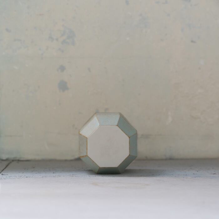 陶磁器製 変型八角柱 約12cm×口径11cm×底面最長7.5cm ヴィンテージ・ブルー
